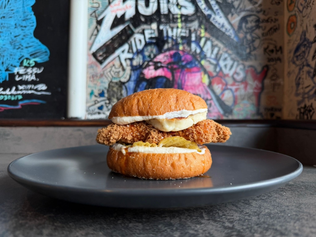 – Kimchimajo, kanapihvi, Chili-Seesamkurkut, Gochujang-ketsuppi