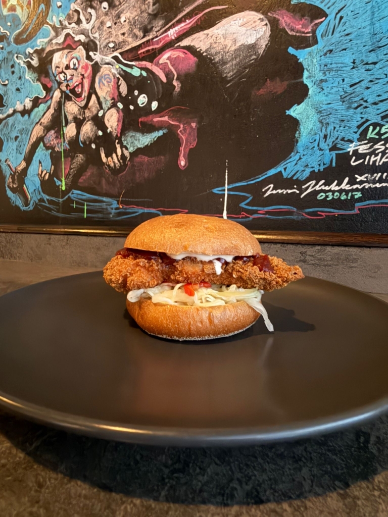– Kimchimajo, kanapihvi, Chili-Seesamkurkut, Gochujang-ketsuppi